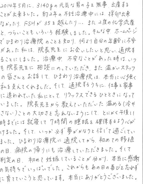 ひまわり治療院に通院してから、初めての移植の日、病院の帰りにも治療していただきました。