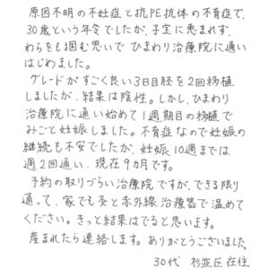 原因不明の不妊症と抗PE抗体の不育症で、30歳という年齢でし…